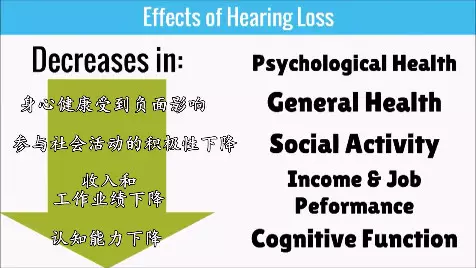 美國著名作家海倫·凱勒曾說過這樣一句話:<br /> 盲,隔絕了人與物;<br /> 聾,隔絕了人與人。<br /> 那么,“聾”(<a href="http://m.hnghng.cn/listDetail.aspx?id=102328" target="_blank"><span style="color:#3333ff;"><strong>聽力損失</strong></span></a>)除了讓你聽不到聲音,是怎樣隔絕人與人的呢?<br /> 其實這種“隔絕”體現在給你生活帶來的種種困擾,導致你社交困難、抑郁、癡呆......<br /> 而如何早期發現聽力損失則顯得特別重要。 <a href="http://m.hnghng.cn/listDetail.aspx?id=102289" target="_blank"><span style="color:#3333ff;"><strong>聽力損失三大類型,選配什么樣的助聽器效果會更好?</strong></span></a><br /> 主要內容如下:了解聽力損失帶來的負面影響,查查看你是否有聽力損失。<br /> <br /> 最近你是否表現出聽力損失的早期癥狀?事實上,可能并不是只有你一個人。<br /> 盡管有龐大的人群正遭遇著聽障問題,但據不完全統計,大約只有20%的人會尋求合適的治療(中國的這個數據可能不到10%)。<br /> 聽力損失會對生活質量產生負面影響,使人感到抑郁、孤立。<br /> <img src="/upfiles/201811300852262254.jpg" alt="" /><br /> 為了意識到早期干預的重要性,你必須認識到聽力問題對生活造成的影響。<br /> 聽力損失給生活帶來的不良影響包括:<br /> 認知能力下降、收入和工作業績下降、參與社會活動的積極性下降、身心健康受到負面影響、社會孤立感增強、學習能力下降、危及人身安全、出現老年癡呆癥的征兆。<br /></span><p><span style="font-size:16px;"> <img src="/upfiles/201811300852404472.png" alt="" /></span></p><p><span style="font-size:16px;"><img src="/upfiles/201811300852556714.png" alt="" /><br /></span></p><span style="font-size:16px;"> 那么,如何判斷自己是否出現早期聽力損失的癥狀呢?<br /> 你可以問自己以下5個問題:<br /> 1、你是否經常覺得別人說話含糊不清?<br /> <img src="/upfiles/201811300853073010.png" alt="" /><br /> 2、你是否經常覺得耳朵里嗡嗡作響(耳鳴)?<br /> <img src="/upfiles/20181130085316618.png" alt="" /><br /> 3、你是否經常要求別人重復所說的話?<br /> <img src="/upfiles/201811300853245227.png" alt="" /><br /> 4、你的家人是否經常抱怨你把電視聲音開得太大?<br /> <img src="/upfiles/20181130085343834.png" alt="" /><br /> 5、你是否在人多嘈雜的環境中難以理解言語聲?<br /><img src="/upfiles/201811300853513417.png" alt="" /><br /> 對以上任何問題,如果你的回答是“是”,那么你很有可能存在聽力損失。<a href="http://m.hnghng.cn/listDetail.aspx?id=102373" target="_blank"><span style="color:#3333ff;"><strong>出現這些情況看來你是真的需要助聽器了</strong></span></a><br /></span><p><span style="font-size:16px;"> 這時,你應該盡快找專業人員進行檢查,不要讓聽力損失影響到你快樂的生活!</span></p><p><span style="font-size:16px;"> 相關推薦閱讀:<a href="http://m.hnghng.cn/listDetail.aspx?id=102375" target="_blank"><span style="color:#3333ff;"><strong>聽力下降正在侵蝕不同年齡段人群</strong></span></a></span></p><p><span style="font-size:16px;"> 聽覺有道助聽器價格:http://m.hnghng.cn/products.html</span></p><span style="font-size:16px;"> 發布于2018年11月30日 星期五<br /> 上午8:55分</span>" />