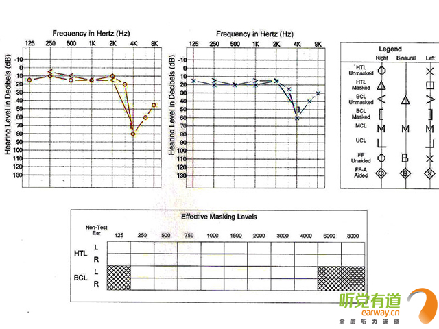 <span style="font-size:16px;"> 首先聽(tīng)覺(jué)有道跟大家解釋一下純音測(cè)聽(tīng)的定義以及臨床意義。純音測(cè)聽(tīng)包括氣導(dǎo)聽(tīng)閾測(cè)試(AC)和骨導(dǎo)聽(tīng)閾測(cè)試(BC),以耳機(jī)及骨導(dǎo)振子給聲,反應(yīng)受試者在安靜環(huán)境下能夠聽(tīng)到的各個(gè)頻率的最小聲音的聽(tīng)力級(jí)(氣導(dǎo)頻率范圍125-8000Hz,骨導(dǎo)250-4000Hz)。它是目前能準(zhǔn)確反映聽(tīng)敏度的主觀行為測(cè)試方法之一,在臨床上是最基本最重要的聽(tīng)力檢查方法。</span></p><p><span style="font-size:16px;"><br /></span></p><p style="text-align: center;"><span style="font-size:16px;"><img src="/upfiles/201803010200415958.jpg" align="middle" alt="" /><br /></span></p><p style="text-align: center;"><span style="font-size:16px;"><br /></span></p><p><span style="font-size:16px;"> 先整體看一下聽(tīng)力圖,它的橫坐標(biāo)是純音的頻率,縱坐標(biāo)表示的是聽(tīng)力級(jí)(單位為db HL),從上往下看數(shù)字是變大的。0表示聽(tīng)力零級(jí),簡(jiǎn)單地說(shuō)就是科研人員測(cè)了很多聽(tīng)力正常男女的聽(tīng)力,以他們能聽(tīng)到的最小聲音作為聽(tīng)力零級(jí)。所以如果你的聽(tīng)力是正常的話(huà),聽(tīng)力圖上的閾值曲線(xiàn)應(yīng)該在零附近浮動(dòng),如果你聽(tīng)力超常,那就在0以上也就是為負(fù)值了。如果你聽(tīng)力下降,那線(xiàn)就往下走,越往下就說(shuō)明聽(tīng)力損失得越多。從生活常識(shí)上理解,所謂聽(tīng)閾聽(tīng)閾,閾值越低表示你能聽(tīng)到越小的聲音,聽(tīng)力就越好,閾值越高,聽(tīng)力越差。</span></p><p><span style="font-size:16px;"> 接著說(shuō)一下聽(tīng)力圖上的圈圈叉叉代表的意思。叉叉表示左耳的氣導(dǎo)聽(tīng)閾,圈圈表示右耳氣導(dǎo),開(kāi)口向左的尖括號(hào)表示左耳骨導(dǎo),開(kāi)口向右的表示右耳骨導(dǎo)。旁邊的masked表示加掩蔽之后的聽(tīng)力。</span></p><p><span style="font-size:16px;"> 為什么要加掩蔽呢?舉個(gè)例子:你右耳聽(tīng)力比左耳好,當(dāng)你左耳給聲強(qiáng)度很大,會(huì)出現(xiàn)你左耳其實(shí)沒(méi)聽(tīng)見(jiàn)但右耳偷聽(tīng)到了的情況,這時(shí)你就會(huì)反應(yīng),但是這時(shí)你的反應(yīng)能代表左耳的聽(tīng)閾嗎?肯定比你實(shí)際聽(tīng)閾要好,所以測(cè)聽(tīng)人員會(huì)在你右耳加噪聲,不讓你右耳偷聽(tīng)左耳的聲音,這樣測(cè)出來(lái)的左耳聽(tīng)力稱(chēng)掩蔽之后的聽(tīng)閾。左耳掩蔽之后的氣導(dǎo)用小正方形來(lái)表示。同理,右耳掩蔽用小三角形表示。骨導(dǎo)也需要掩蔽。左耳掩蔽后骨導(dǎo)用向左的方括號(hào)表示,右耳用向右的方括號(hào)表示。</span></p><p><span style="font-size:16px;"> 最后我們?cè)撊绾畏治雎?tīng)力圖。簡(jiǎn)單地說(shuō),氣導(dǎo)的傳聲路徑包括外中內(nèi)耳以及神經(jīng)部分,骨導(dǎo)只包括內(nèi)耳和神經(jīng)部分,因此出現(xiàn)骨氣導(dǎo)差則表明聽(tīng)覺(jué)通路上有外中耳病變。考慮到各種誤差因素,一般認(rèn)為骨氣導(dǎo)相差10db HL屬于正常范圍。根據(jù)骨氣導(dǎo)的關(guān)系可以將聽(tīng)力損失分為傳導(dǎo)性聽(tīng)力損失、感音神經(jīng)性聽(tīng)力損失以及混合性聽(tīng)力損失。骨氣導(dǎo)差大于10,且骨導(dǎo)在正常范圍為傳導(dǎo)性聽(tīng)損;骨氣導(dǎo)一致且都在正常范圍以外為感音神經(jīng)性聽(tīng)損;骨氣導(dǎo)差大于10,骨導(dǎo)在正常范圍之外為混合性聽(tīng)損。</span></p><p><span style="font-size:16px;"> 當(dāng)然,如果想進(jìn)一步定位聽(tīng)力診斷結(jié)果,還需要結(jié)合其他的一些測(cè)試如聲導(dǎo)抗、ABR、耳蝸電圖、耳聲發(fā)射、40Hz、影像學(xué)檢查等。</span></p><p><span style="font-size:16px;"> 更多詳情請(qǐng)登錄m.hnghng.cn。</span></p>" />
