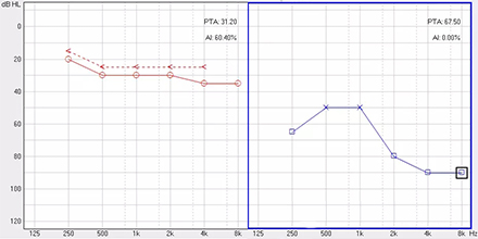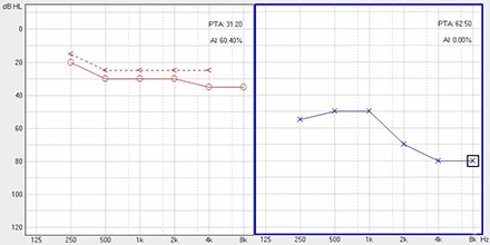 <span style="font-size:16px;"> 純音聽閾測(cè)試是聽力學(xué)所有測(cè)試項(xiàng)目中最基本的一項(xiàng)內(nèi)容,包括氣導(dǎo)(AC)、骨導(dǎo)(BC)、最舒適閾(MCL)與不舒適閾(UCL)測(cè)試。測(cè)試結(jié)果能夠直接反映患者雙耳的聽力損失程度、性質(zhì)與動(dòng)態(tài)范圍,還能夠間接反映患者的患病位置、病因與助聽后效果。</span></p><p><span style="font-size:16px;"> 一般地,整個(gè)檢查控制在10分鐘左右,既能全面做完檢查,又不至患者疲憊而影響主觀反應(yīng)。</span></p><p><span style="font-size:16px;"> 純音聽閾測(cè)試是最考驗(yàn)聽力學(xué)工作者實(shí)際工作能力的一項(xiàng)基本內(nèi)容:</span></p><p><span style="font-size:16px;"> 1、若患者曾長(zhǎng)期暴露于噪聲中,且無(wú)其它致使聽損因素,很可能在3 kHz或6 kHz出現(xiàn)明顯的下降,聽力曲線呈現(xiàn)“V”字形,所以除了常規(guī)的倍頻程頻率外,還要加測(cè)這兩個(gè)頻率,否則就犧牲了多通道助聽器的意義;</span></p><p><span style="font-size:16px;"> 除了有過(guò)噪聲接觸史的患者需要加測(cè)半倍頻程外,涉及聲場(chǎng)助聽聽閾評(píng)估、賠償?shù)惹闆r都需要加測(cè)半倍頻程。</span></p><p><span style="font-size:16px;"> 耳鳴困擾的患者,注意避免與耳鳴聲類似的純音,若還用純音作為刺激聲,患者就會(huì)分辨不清,出現(xiàn)假陽(yáng)性或假陰性。所以,測(cè)試者要換成囀音,既有別于耳鳴聲,又具有頻率特異性。</span></p><p><span style="font-size:16px;"> 2、不舒適閾反映患者對(duì)大聲的忍耐力,不舒適閾與氣導(dǎo)的差值能顯示患者的動(dòng)態(tài)范圍,指導(dǎo)驗(yàn)配師調(diào)節(jié)助聽器的最大輸出。</span></p><p><span style="font-size:16px;"> 不舒適閾測(cè)試頻率是否越多越好呢?非也。測(cè)得頻率過(guò)多,一會(huì)引起患者疲勞或不適,二是沒必要,大多數(shù)助聽器的最大輸出是一個(gè)整體,不能像調(diào)增益和壓縮那樣分通道,所以測(cè)多了并無(wú)好處,一般測(cè)0.5、1、2、4 kHz。</span></p><p><span style="font-size:16px;"> 3、如果兩側(cè)聽力有明顯差異,此時(shí)就要準(zhǔn)備好掩蔽了,分為氣導(dǎo)掩蔽與骨導(dǎo)掩蔽。</span></p><p><span style="font-size:16px;"> (1)氣導(dǎo)掩蔽的判斷有兩個(gè)原則,只要符合其中一個(gè)原則,就需要重新測(cè)差耳氣導(dǎo)。具體做法是:</span></p><p><span style="font-size:16px;"> 測(cè)試完雙耳氣導(dǎo),若發(fā)現(xiàn)某一頻率差耳氣導(dǎo)閾值比好耳氣導(dǎo)閾值多40 dB以上就要懷疑有可能是好耳偷聽的,需要給好耳氣導(dǎo)加掩蔽聲;</span></p><p><span style="font-size:16px;"> 測(cè)試完雙耳氣導(dǎo)與好耳骨導(dǎo),若發(fā)現(xiàn)某一頻率差耳氣導(dǎo)閾值比好耳骨導(dǎo)閾值多40 dB以上就要懷疑有可能是好耳偷聽的,需要給好耳氣導(dǎo)加掩蔽聲。</span></p><p><span style="font-size:16px;"> 下面為未掩蔽的聽力圖:</span></p><center><span style="font-size:16px;"><img alt="" src="/upfiles/201809180234471614.png" width="440" height="220" /></span></center><p></p><p><span style="font-size:16px;"> 下圖為掩蔽后的左耳真實(shí)氣導(dǎo)值:</span></p><center><span style="font-size:16px;"><img alt="" src="/upfiles/201809180234541797.png" width="440" height="220" /></span></center><p></p><p><span style="font-size:16px;"> (2)骨導(dǎo)掩蔽的判斷原則:</span></p><p><span style="font-size:16px;"> 測(cè)試完雙耳氣導(dǎo)與好耳骨導(dǎo),若發(fā)現(xiàn)某一頻率差耳氣導(dǎo)閾值比好耳骨導(dǎo)閾值大于等于15 dB就必須予以掩蔽,重測(cè)骨導(dǎo)。下圖為右耳氣導(dǎo)加掩蔽后左耳骨導(dǎo)的真實(shí)值:</span></p><center><span style="font-size:16px;"><img alt="" src="/upfiles/201809180235004928.png" width="440" height="220" /></span></center><p></p><p><span style="font-size:16px;"> 注意:</span></p><p><span style="font-size:16px;"> 1)掩蔽的規(guī)則要按順序適用;</span></p><p><span style="font-size:16px;"> 2)各頻率根據(jù)規(guī)則決定是否需要加掩蔽;</span></p><p><span style="font-size:16px;"> 3)很少需要掩蔽所有頻率,通常氣導(dǎo)掩蔽頻率不應(yīng)超三個(gè),骨導(dǎo)掩蔽頻率不應(yīng)超兩個(gè),否則受試者會(huì)疲憊不堪。</span></p><p><span style="font-size:16px;"> 醫(yī)院測(cè)聽的主要目的是診斷和鑒別聽力損失的性質(zhì)和程度,驗(yàn)配中心的主要目的是盡可能地幫助患者選擇并調(diào)試好助聽器。</span></p><p><span style="font-size:16px;"> 更多詳情請(qǐng)登錄m.hnghng.cn</span></p>" />
