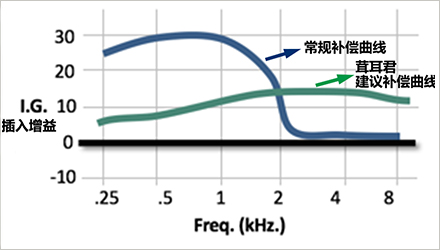 本文根據(jù)多年的臨床聽力學(xué)經(jīng)驗(yàn),以及國內(nèi)外的研究結(jié)果,分享復(fù)雜案例中上升型聽力損失的調(diào)試技巧。</p><p> 什么是上升型聽力損失?</p><p> 上升型聽力損失,顧名思義,指的是聽力損失從低頻到高頻逐漸降低,聽力圖上呈現(xiàn)上升“爬坡”的曲線形狀。</p><p> </p><center><img alt="" src="/upfiles/201904220143022080.png" width="440" height="250" /></center><p></p><p> 在本文中特指那些低頻為中度聽力損失,中高頻聽力正常或接近正常的,其中不包含傳導(dǎo)性聽力損失和混合型聽力損失,單指感音神經(jīng)性聽力損失。</p><p> 這類聽力損失,為什么按照聽力圖顯示的損失,多補(bǔ)償?shù)皖l反而沒用呢?到底應(yīng)該怎么調(diào)呢?</p><p> 先看一個(gè)有趣的循證測試</p><p> 在講述如何處理上升型聽力損失之前,我們先來看一個(gè)有趣的實(shí)驗(yàn)。</p><p> 這項(xiàng)研究共有6名受試者進(jìn)行了測試,其中5名受試者在高頻時(shí)聽力正常或接近正常,而低頻時(shí)聽力損失為中等程度,1名受試者為V型聽力圖。也就是說絕大部分人符合本文所講的上升型聽力損失。</p><p> 首先對6名受試者進(jìn)行低通、高通、寬頻、K-Bass放大。也就是說分別給予如下圖的增益:</p><p> </p><center><img alt="" src="/upfiles/201904220143074763.png" width="440" height="250" /></center><p></p><p> 四種放大方案的最大區(qū)別就在于低頻和高頻增益各有不同。</p><p> 在低通放大中,低頻有一定的增益,而高頻則有一些插入缺失(負(fù)增益);在高通放大中,低頻增益為零,高頻增益最多;在寬頻放大中,低、高頻都有增益,其中低頻有較大增益高頻,高頻有相對較少的增益;在K-Bass放大中,低頻增益明顯,高頻增益為零,剛好彌補(bǔ)插入缺失。</p><p> 然后分別在無增益以及四類放大情況下進(jìn)行言語清晰度的評估,結(jié)果如下圖所示。</p><p> </p><center><img alt="" src="/upfiles/201904220143125111.png" width="300" height="340" /></center><p></p><p> 我們發(fā)現(xiàn)沒有補(bǔ)償(UA),寬頻(BB),高通(HP),K-Bass(KB)的平均言語清晰度都大于低通(LP)的平均言語清晰度。</p><p> 此外,分別測試每個(gè)受試者在低通(LP)和其他放大方案下的高頻輔音辨別率得分,結(jié)果顯示,其他放大方案都高于低通(LP)的輔音辨別率得分,如下圖所示。</p><p> </p><center><img alt="" src="/upfiles/201904220143177827.png" width="300" height="335" /></center><p></p><p> 是不是疑惑?</p><p> 看到上述實(shí)驗(yàn),相信很多驗(yàn)配師肯定會很疑惑:為什么只給低頻補(bǔ)償?shù)男Ч亲畈畹哪?對于上升型的聽力損失難道不是應(yīng)該好好補(bǔ)償?shù)皖l聽力損失嗎?</p><p> 解疑之前,不妨再看個(gè)“假如”:</p><p> 假如你在看電視,出現(xiàn)一些你非常感興趣的信息,你是不是會提高音量去仔細(xì)傾聽呢?</p><p> </p><center><img alt="" src="/upfiles/20190422014323161.png" width="440" height="250" /></center><p></p><p> 答案是肯定的,遇到我們感興趣的信息,我們常常會“豎起耳朵”仔細(xì)聆聽。</p><p> 我們都知道言語信息通常分布在中高頻率,所以要想聽到我們感興趣的言語信息,我們可以適當(dāng)調(diào)高電視機(jī)音量,即便我們的聽力是正常的。</p><p> 回到助聽器驗(yàn)配,可想而知,對于配戴助聽器的弱聽人士來說,考慮到高頻的插入缺失,也的的確確需要給予其一定的聽力補(bǔ)償。</p><p> 但是有些驗(yàn)配師可能會想,上升型聽力損失的高頻接近正常,高頻增益過大會不會帶來不好的影響呢?</p><p> 其實(shí)不然,只要在弱聽人士的聽覺動(dòng)態(tài)范圍內(nèi)增加高頻增益,就不會帶來不適;這就相當(dāng)于聽力正常者平常看電視時(shí)增加音量,能讓我們更好地聽到自己想要聽到的東西。</p><p> 簡單而高效的調(diào)試技巧</p><p> 初次驗(yàn)配時(shí):</p><p> 在處理上升型聽力損失時(shí),我們通常首先會看到如下圖中的藍(lán)色曲線,這似乎也是最符合常理的。</p><p> </p><center><img alt="" src="/upfiles/201904220143288699.png" width="440" height="250" /></center><p></p><p> 但是,我們前面介紹了低通、高通、寬頻、K-Bass放大,結(jié)果表明,低通放大給足低頻,高頻不補(bǔ)償?shù)男Ч畈睢?lt;/p><p> 所以,基于循證驗(yàn)配,在調(diào)試上升型聽力損失時(shí),建議:在高頻給予至少10dB-15dB的插入增益,確保弱聽人士在高頻能夠聽到聲音,并適當(dāng)減少低頻增益,如下圖中的綠色補(bǔ)償曲線。</p><p> </p><center><img alt="" src="/upfiles/20190422014334476.png" width="440" height="250" /></center><p></p><p> 不必糾結(jié)高頻聽力正常會不會補(bǔ)償不妥,目前的多通道非線性助聽器已經(jīng)可以對高強(qiáng)度輸入進(jìn)行防范管控,所以不用擔(dān)心弱聽人士會因高頻的補(bǔ)償而感到不適。</p><p> 相反,你甚至?xí)@訝,弱聽人士突然之間聽得更加清楚了。</p><p> 精細(xì)微調(diào)時(shí):</p><p> 另外,在接下來的微調(diào)時(shí),每個(gè)弱聽人士的聆聽需求可能都不一樣。 有些可能想要更多的低頻能量,有些可能喜歡寬頻補(bǔ)償,有些可能一點(diǎn)低頻補(bǔ)償不需要,但是,幾乎沒有弱聽人士想要降低高頻增益。</p><p> 很多時(shí)候,弱聽人士都希望把高頻再多補(bǔ)償點(diǎn),以提高言語清晰度。</p><p> 所以,在此建議可以逐步減少低頻增益(部分可適當(dāng)增加低頻),增加高頻增益,慢慢調(diào)試,直到弱聽人士覺得合適,如下圖綠色曲線的紅箭頭所