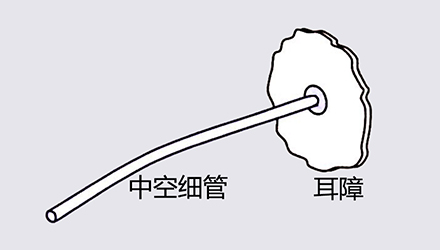 待耳樣凝固后取出,確認嵌在耳障上的細管內部通暢,并再次將耳樣插入耳道內。