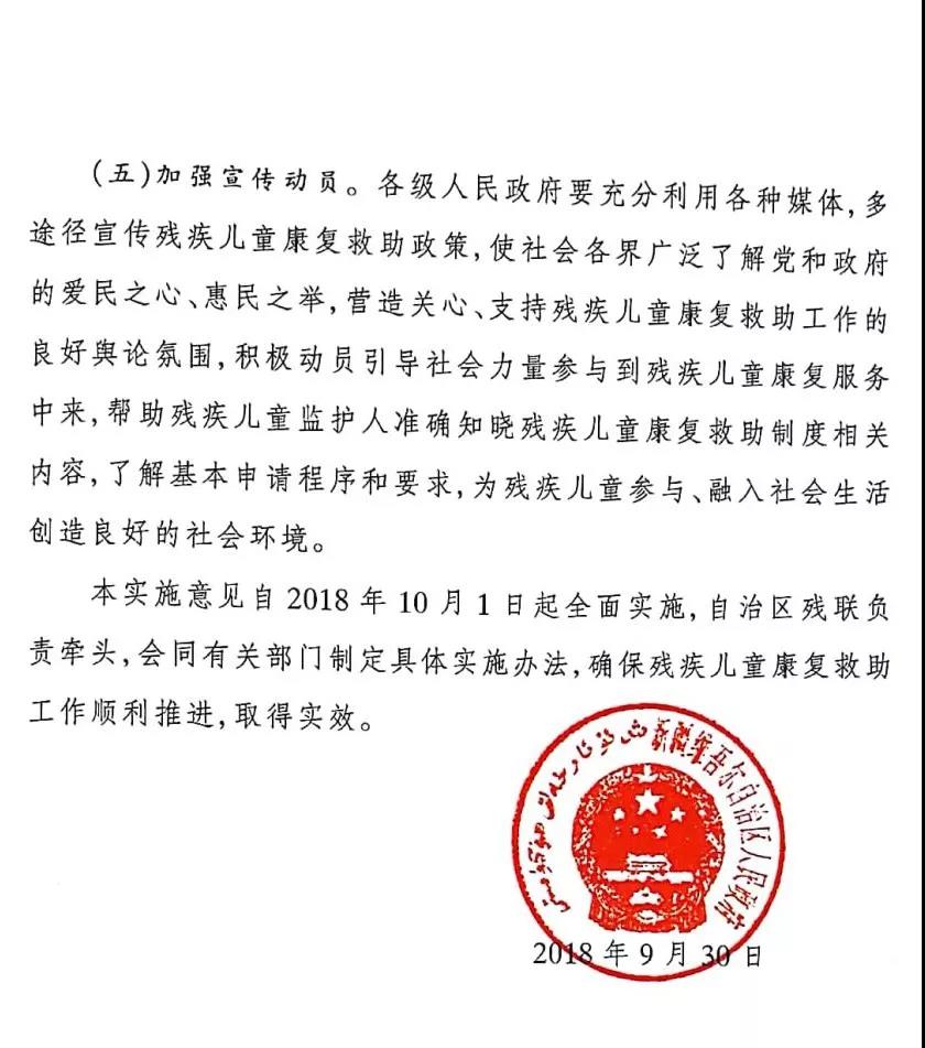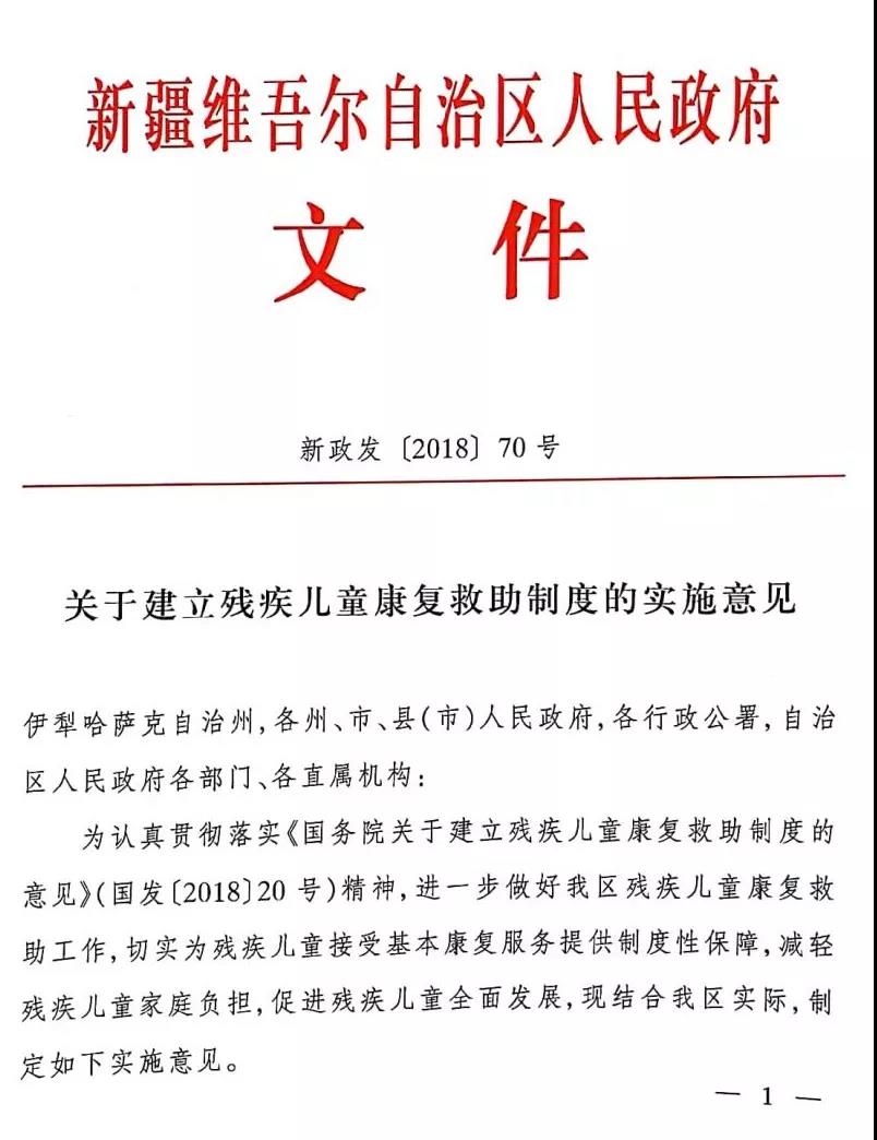 新疆維吾爾自治區(qū)人民政府關(guān)于建立殘疾兒童康復(fù)救助制度的實(shí)施方案