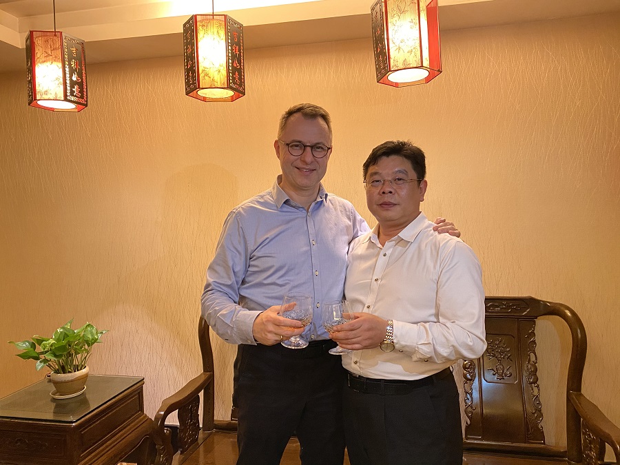 △Jakob Sonnenberg先生(左)聽覺有道董事長李久耕先生(右)