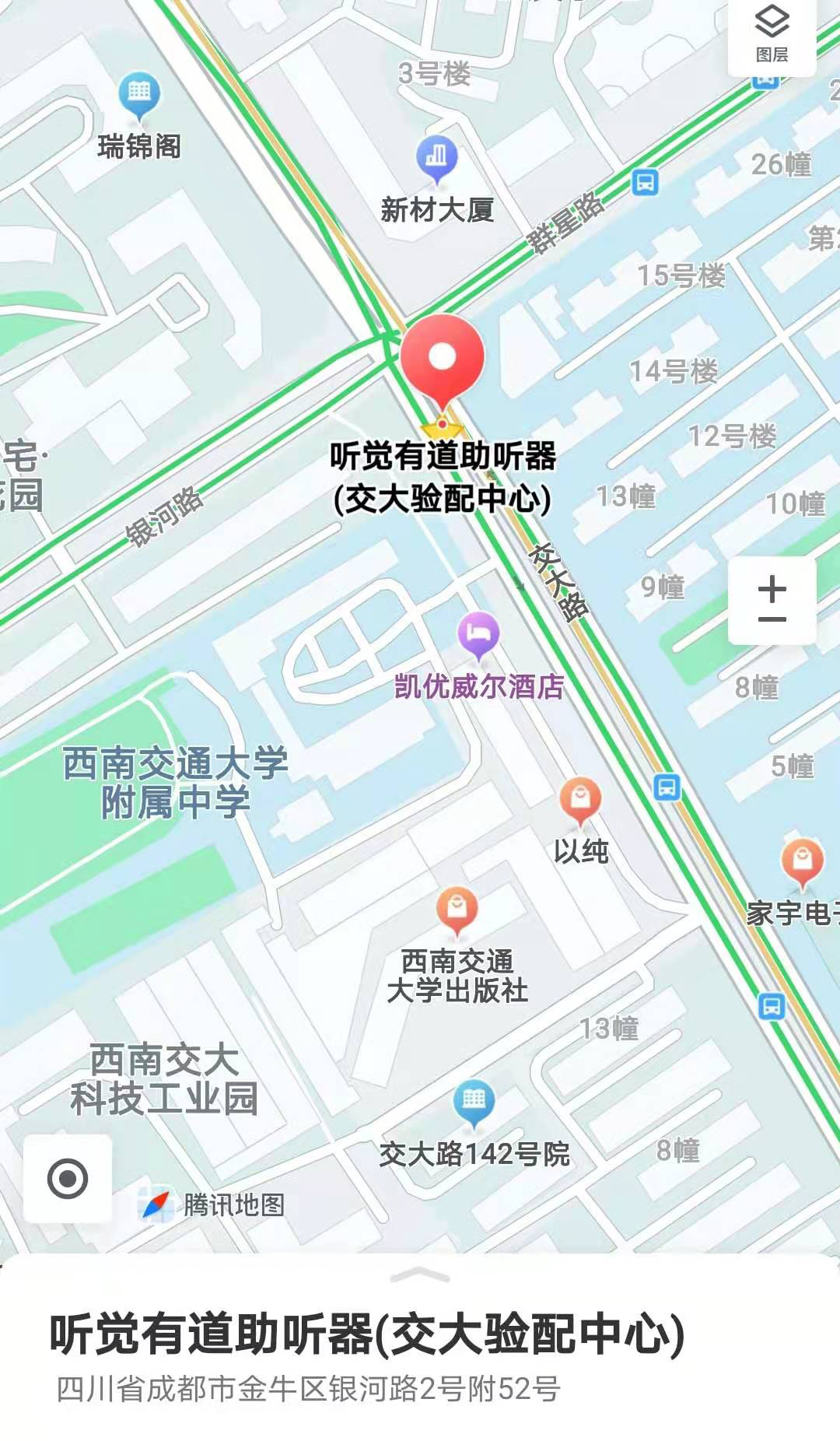 <span style="font-size:16px;">8年前,</span></div><div style="text-align: center;"><span style="font-size:16px;">因市政拆遷我們不得不搬離。</span></div><div style="text-align: center;"><span style="font-size:16px;">8年后,</span></div><div style="text-align: center;"><span style="font-size:16px;">我們強(qiáng)勢回歸!</span></div><div style="text-align: center;"><span style="font-size:16px;"><br /></span></div><div style="text-align: center;"><span style="font-size:16px;">聽覺有道成都交大驗(yàn)配中心正式開業(yè)</span></div><div style="text-align: center;"><span style="font-size:16px;">期待新老用戶光臨</span></div><div style="text-align: center;"><span style="font-size:16px;">檢測聽力,驗(yàn)配、清潔保養(yǎng)助聽器</span></div><div style="text-align: center;"><span style="font-size:16px;"><br /></span></div><div style="text-align: center;"><span style="font-size:16px;"><br /></span></div><div style="text-align: center;"><span style="font-size:16px;">全國服務(wù)熱線:</span></div><div style="text-align: center;"><span style="font-size:16px;">400 900 5669</span></div><div style="text-align: center;"><span style="font-size:16px;"><br /></span></div><div style="text-align: center;"><span style="font-size:16px;">門店座機(jī):</span></div><div style="text-align: center;"><span style="font-size:16px;">028-87615139</span></div><div style="text-align: center;"><span style="font-size:16px;"><br /></span></div><div style="text-align: center;"><span style="font-size:16px;">手機(jī):</span></div><div style="text-align: center;"><span style="font-size:16px;">18108220648(微信同號)</span></div><div style="text-align: center;"><span style="font-size:16px;"><br /></span></div><div style="text-align: center;"><span style="font-size:16px;">地址:四川省成都市金牛區(qū)銀河路2號附52號(興熙北家宴館正對面)</span></div><div style="text-align: center;"><span style="font-size:16px;"><br /></span></div><div style="text-align: center;"><span style="font-size:16px;">專業(yè)驗(yàn)配師</span></div><div style="text-align: center;"><span style="font-size:16px;">知名品牌助聽器</span></div><div style="text-align: center;"><span style="font-size:16px;">十大免費(fèi)服務(wù)項(xiàng)目</span></div><div style="text-align: center;"><span style="font-size:16px;">近30年行業(yè)經(jīng)驗(yàn),門店覆蓋百余城市</span></div><div style="text-align: center;"><span style="font-size:16px;">專業(yè)有保障,售后更便利</span></div><div style="text-align: center;"><span style="font-size:16px;"><br /></span></div><div style="text-align: center;"><span style="font-size:16px;"><img src="/upfiles/202103160249382669.png" width="720" alt="" /><br /></span></div><div style="text-align: center;"><span style="font-size:16px;"><br /></span></div><div style="text-align: center;"><span style="font-size:16px;"><img src="/upfiles/202103160253238351.jpg" width="720" alt="" /><br /></span></div><div style="text-align: center;"><span style="font-size:16px;"><br /></span></div><div style="text-align: center;"><span style="font-size:16px;"><img src="/upfiles/202103160250004621.jpg" width="720" alt="" /></span><br /></div>" />